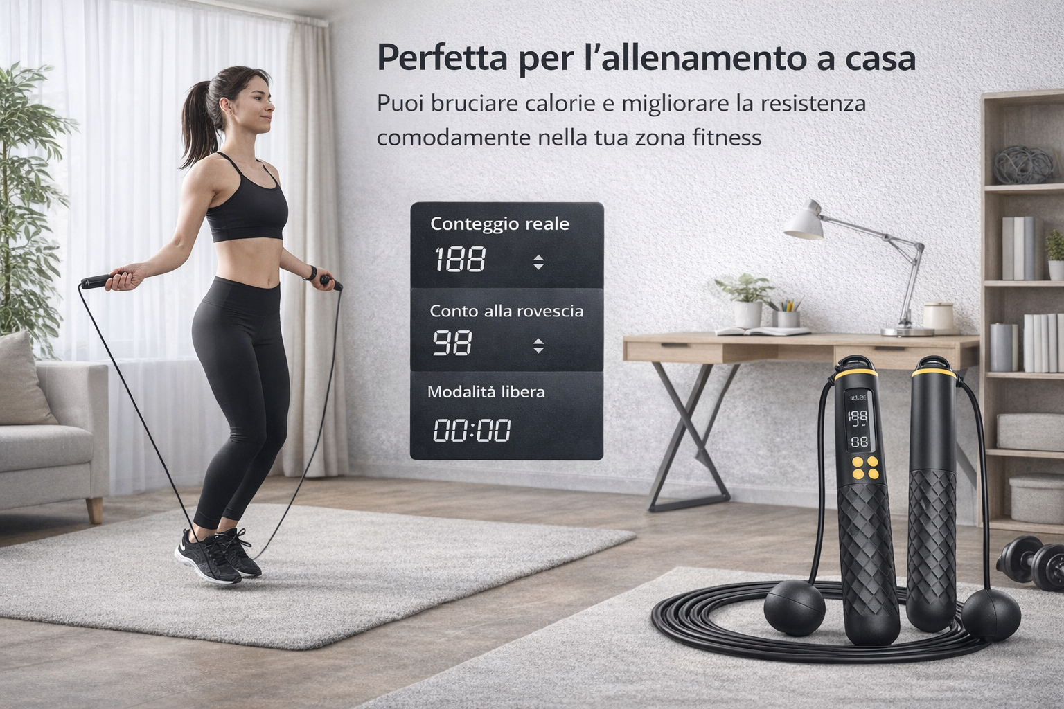 La uso soprattutto a casa perché non ho molto spazio. La modalità senza corda è comodissima e il display aiuta a tenere il ritmo.